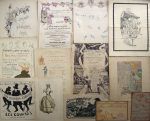 l’Union artistique illustré par Mars (1892). • Annonce du Cercle de l’Union artistique illustré par Detaille (1881).• Programme du Théâtre Libre illustré par Ibels (1892). • Programme des Veillées artistiques de Plaisance illustré par René Lelong (8 janvier 1898).• Invitation au Bal de l’Internat illustré par Bellery-Desfontaines (1897), par G. Mouchon (1899), Louis Morin (1901).• Petite affiche anonyme : Dernière de Recensons au Trianon (1898 ?).• Petite affiche Jouons la Comédie illustrée par Louis Bombled (1901). • Programme de la Grande Kermesse de l’Orangerie illustrée par Georges Clairin (7 juin 1878).• Programme de la Gaité lyrique illustré par Maurice Neumont (1929). • Programme de la Matinée de Gala au profit de Marie Delna à Pleyel illustré par Maurice Neumont (1928).• Programme d’une soirée au Ministère de l’Intérieur en l’honneur du London County Council illustré par Levy Dhurmer (1906). • Soirée en l’honneur des majestés britanniques (Dieu sauve le Roi par Sacha Guitry) illustré par Marie Laurencin (1923).• Programme de la Revue incohérente. Illustration par Ménélas (s. d.).• Eau-forte non signée (29,8 x 23 cm). Une Soirée musicale 125 rue de Vaugirard (Imp. Delâtre).• Annonce pour les Couard’s aux Folies-Bergère, illustrée par Ibels.