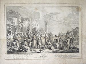 159.[THÉÂTRE, SPECTACLES]. DOCUMENTS. Réunion d’une soixantaine de documents, portraits de comédiens, croquis d’architecture de théâtre, coupures de journaux, dont :• Foire de Venise (21 x 28,5 cm à la cuvette) gravé par Le Bas...