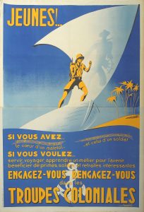 marges. •BREUGNOT. Jeunes Si vous avez le cœur d’un matelot… Engagez-vous dans les troupes coloniales. En 2 feuilles de 79 x 57 cm chacune. Très bon état.•Erckmann Chatrian et l’Alsace de leur Temps. Exposition Hôtel de Rohan 8 décembre 1949 - 10 janvier 1950. Imp. Mourlot frères. 73 x 52 cm. Très bon état.