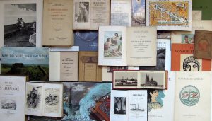dépliante. Nombreuses rousseurs.•Le Panorama. Le Président au Palais de l’Elysée. Voyage en Russie. Baschet, fin XIXe s. In-4 oblong, rel. demi-percaline moutarde, titre Fêtes de l’Alliance.•ROBERTSON (W.). Histoire de l’Amérique. Nouvelle édition. Paris, Didier, 1852. 2 volumes in-8, reliure demi-chagrin bleu. •Joint : Atlas de Géographie par Delamarche (Grosselin, 1848) et lot d’une trentaine de cartes, la plupart gravées par Ambroise Tardieu.