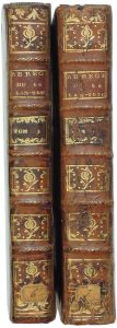 Briasson, Musier, Prault… Lyon, Périsse, Cellier, 1768.2 volumes in-8, reliure de l’époque veau marbré, dos à 5 nerfs orné, tranches rouges. Qq. accrocs sur le dos du t. 1., cassure restaurée sur le plat supérieur du t. 1, coins usés. T. 1 : xxiv-484-(4) pp. T. 2 : (4)-585-(1) pp. Morceau de papier contrecollé en page de garde de ch. volume, cachet de bibliothèque (nom gratté) sur les pages de titre et dernier f. de chaque vol., qq. rousseurs. Première édition française.