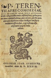 251.TERENCE. P. Terentii Afri Comoediae, ex D. Erasmi et Jo. Rivii Attendoriensis castigationibus multo absolutissimae, quibus praeter omnes omnium hactenus annotationes [videlicet : Aelii Donati, Erasmi, Petri Bembi, Christophori Hegendorphini,...