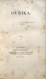 mise dans le commerce ?) parue la même année que l’originale « tirée à très petit nombre », portant l’inscription au verso du faux-titre : Publié au profit d’un établissement de charité. Célèbre roman mettant en scène une jeune Sénégalaise fille d’esclave, ramenée en France, tombant amoureuse du petit-fils de son sauveur. Vicaire III, 535.
