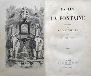 261.LA FONTAINE (Jean de). Fables illustrées par Grandville. Nouvelle édition. Paris, H. Fournier aîné, 1838. 2 volumes in-8, reliure (signée Capé) de l’époque veau glacé violet, dos lisse orné, triple filet doré, tranches marbrées,...