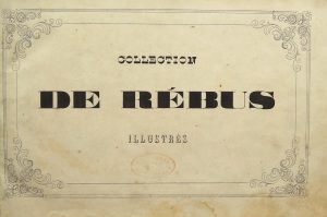 265.RÉBUS. Collection de Rébus Illustrés. S. l., s. n. (v. 1850).Grand in-8 oblong, reliure demi-percaline chagrinée verte, plats papier vert gaufré. Qq. frottements, coins usés. Titre, 86 planches, 6 pp. (Explication des Rébus). Petite trace...