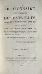 277.COLLECTIF. Dictionnaire Historique des Batailles, sièges et combats de terre et de mer, qui ont eu lieu pendant la Révolution française; Avec une table chronologique des évènemens, et une table alphabétique des noms des Militaires et des...