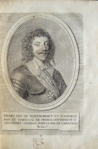 281.DU CROS (Simon). Histoire de la Vie de Henry, dernier duc de Mont-Morency. Contenant tout ce qu’il a fait de plus remarquable depus sa naissance jusques à sa mort. Paris, Antoine de Sommaville, Augustin Courbé, 1643. In-4, reliure demi-basane...