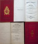 larges nerfs orné, grande plaque à la cathédrale sur les plats ornée au centre d’armes papales, croix potencée du St Sépulchre au centre du second plat, roulette sur les coupes et roulette intérieure, tranche dorée. Qq. légers frottements, petite épidermure en pied du premier plat du t. 1, petites griffures sur les plats de 2 volumes. T. 1 : (4)-685 pp. et 3 planches dépliantes hors texte. T. 2 : (4)-654 pp. et 2 pl. dépliantes hors texte. T. 3 : (4)-659 pp. T. 4 : (4)-595 pp. T. 5 : (4)-688 pp. et 34 planches hors texte. T. 6 : vi-548 pp. Ff. parfois un peu brunis, qq. rousseurs, légère trace de mouillure en marge supérieure au début du t. 3. Importante Table alphabétique des Matières en fin du t. 6.•Bibliothèque des Croisades. Paris, Ducollet, 1829. 4 volumes in-8, même reliure. T. 1 : xv-(1 bl.)-454 pp. T. 2 : (4)- p. 455 à 885. T. 3 : (4)-504 pp. T. 4 : xlvii-582-55 pp. Table générale au tome 4.Bel ensemble de 10 volumes reliés par Simier aux armes de Pie VIII (Francesco Castiglioni, pape de 1829 à 1830).