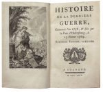 jusqu’à la mort de Louis XVI. Avec figures… Paris, Duprat, Letellier et Cie, 1803. 3 volumes de texte in-8 et un atlas in-4, reliure demi-veau brun marbré, dos lisse orné de fleurons et filets dorés. T. 1 : Frontispice, (8)-286 pp. T. 2 : Frontispice, (4)-286 pp. T. 3 : Frontispice, (4)-456 pp. Atlas : 24 pp. et 3 tableaux dépliants dont le 3e en deux grandes feuilles. Rares rousseurs. Édition originale. Bon exemplaire complet en 3 volumes et un atlas.On joint : ANONYME. Histoire de la Dernière Guerre, commencée l’an 1756, & finie par la Paix d’Hubertsbourg, le 15 février 1763. Nouvelle édition, corrigée. Cologne, s. n., 1769. In-12, reliure de l’époque veau marbré, dos lisse orné, tranches rouges. Manque de cuir (arraché) en tête du second plat. 192 pp. dont le frontispice (Eisen gravé par Bosse) et deux cartes dépliantes in fine : L’Europe et l’Empire d’Allemagne par le Sr Robert. Trace de mouillure en tête en début de volume et sur les 20 derniers ff.Nouvelle édition de cette histoire relatant la Guerre de sept ans.