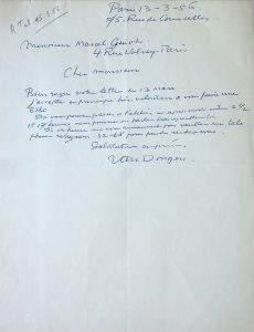 310.Kees Van DONGEN (1877-1968). L.A.S. à Marcel Guiot. ½ p. in-4. Paris, 13 mars 1956.Il accuse réception de sa lettre et accepte de lui faire une lithographie. « Si vous pouvez passer à l’atelier un après-midi entre 2 ½ et 17 heures, nous...
