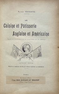 451.SUZANNE (Alfred). La Cuisine et Pâtisserie Anglaise et Américaine. Traité de l’alimentation en Angleterre et en Amérique. 2e édition. Illustré de nombreux dessins par Gérard Tantet et Froment. Paris, Dupont et Malgat, s. d. (1904). In-8,...