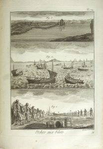 455.COLLECTIF. Encyclopédie Méthodique… Recueil de planches de l’Encyclopédie. Planches des Pêches. Explication de 132 planches des Pêches à cause de 18 doubles. Contenant 1°. les Pêches aux Hameçons, Haims, &c.; 2°. différentes sortes...