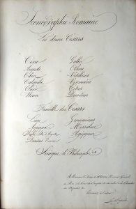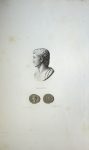 frottements. Recueil composé d’un titre manuscrit et 20 figures gravées par Bertonnier (1) et Sixdeniers (19) d’après Laguiche, toutes protégées par une serpente et protégées par un feuillet de texte parfaitement calligraphié. Rousseurs. Manuscrit de C. Laguiche (ou Bourguignon Laguiche) illustré des mêmes planches que l’ouvrage précédent, accompagnées d’un texte différent. Pour chaque portrait, l’auteur donne l’origine du buste ou monument dont il s’est servi, ajoutant en début d’ouvrage : Quant aux médailles dessinées sous chaque buste, j’ai choisi dans le Cabinet du Roi celles qui sont d’un meilleur style & en même temps d’une plus exacte vérité, pour constater l’authenticité des Portraits. Ex-dono : A Monsieur le Baron de Schonen, Procureur Général du Roi à la Cour des Comptes et membre de la Chambre des Députés. &c… Hommage de l’auteur.