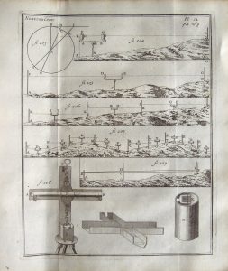 rapport à la Guerre. Paris, Charles-Antoine Jombert, 1725. In-4, reliure basane marbrée, dos à 5 nerfs orné. Coiffe inférieure arasée, petite fente au départ des mors en pied, coins usés. (24)-560-(32) pp. et 34 planches dépliantes hors texte. Grande tache d’encre sur les gardes, qq. rousseurs ou petites taches brunes dans le texte. Qq. annotations. Édition originale.