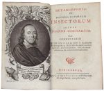 XVIIIe s. veau brun, dos à 5 nerfs orné. Qq. frottements, petits accrocs aux coiffes du t. 1, coins émoussés.T. 1 : Frontispice, titre, titre gravé, (28)-236 pp. et 64 planches hors texte. Trace de mouillure peu marquée en marge des 15 derniers ff. T. 2 : Titre-frontispice, (32)-259 pp. et 42 planches hors texte. Trace de mouillure en marge interne des 30 premiers ff. T. 3 : Titre-frontispice replié, (16)-159 pp. et 21 planches hors texte dont plusieurs dépliantes. Deux premiers cahiers roussis et rousseurs sur les planches.Rare ouvrage complet en trois volumes du peintre néerlandais Johannes Goedart (Luddekburg, 1617-1668), célèbre pour ses illustrations d’insectes, décrivant toutes les phases de l’évolution des insectes de la larve à l’adulte. La préface est datée 1662.