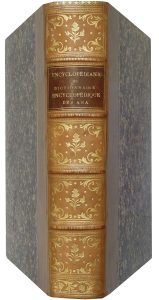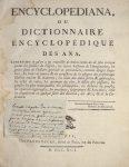 mouillure en marge interne des 4 premiers ff. et en tête d’une douzaine de ff. Texte sur deux colonnes. En début de volume, 4 ff. insérés annonçant Souscription de l’Encyclopédie et Publication de la 39e livraison suivi des nouveaux ouvrages parus.Les éditeurs signalent dans la préface : « L’Encyclopediana est un supplément à l’Encyclopédie méthodique, dont elle fait une partie aussi nécessaire qu’agréable ». Quérard IV, 366.On joint : FRUCHET (Père). Réflexions d’un Franciscain sur les Trois Volumes de l’Encyclopédie avec une lettre préliminaire aux éditeurs. Berlin, s. n., 1754. In-8, broché. Manque couverture d’attente. Frontispice, xii-(2)-191-(1) pp. Tache brune en marge de 5 ff., derniers ff. rongés en angle sans atteinte au texte.L’ouvrage fut réimprimé sous le titre Éloge de l’Encyclopédie et des Encyclopédistes en 1759. Barbier IV, 125.