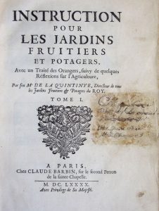498.LA QUINTYNIE (Jean de). Instruction pour les Jardins Fruitiers et Potagers, Avec un Traité des Orangers, suivy de quelques Réflexions sur l’Agriculture. Tome 1. Paris, Claude Barbin, 1690.In-4, reliure moderne pastiche basane brun foncé, dos...