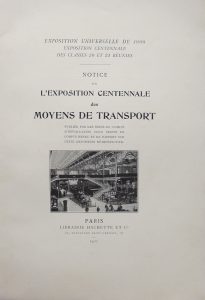 522.COLLECTIF. Notice sur l’Exposition Centennale des Moyens de Transport Publiée par les soins du Comité d’installa-tion pour servir de compte rendu et de rapport sur cette exposition rétrospective destiné aux gens du monde. Paris, Hachette,...