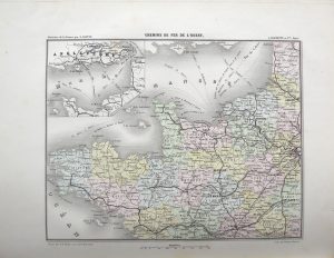 531.JOANNE (Adolphe). Atlas Historique et Statistique des Chemins de Fer Français Contenant 8 cartes gravées sur acier. Paris, Hachette, 1859. In-4, cartonnage éditeur percaline rouge, titre doré sur le plat. Trois petits accrocs sur les mors....