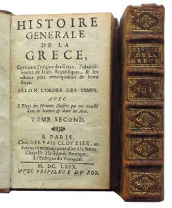 549.[GRÈCE]. [P.R.S.]. Histoire Générale de la Grèce Contenant l’origine des Grecs, l’establissement de leurs Republiques, & les actions plus remarquables de leurs Roys, selon l’ordre des Temps; avec l’Eloge des Hommes Illustres qui ont...