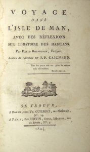557.ROBERTSON (David). Voyage dans l’Isle de Man, avec des Réflexions sur l’Histoire des Habitans. Traduit de l’Anglais par J. P. Caignard. Rouen, Vt Guilbert, Paris, Bertin, 1804. In-8, reliure demi-b asane fauve, dos à nerfs orné....