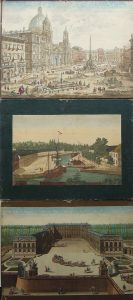 de la Cathédrale de Dorth. Paris, Lachaussée, Daumont, Basset. 30 x 40, cm à la vue. Encadrée.•6 vues montées recto-verso sur 3 cartons : Versailles, Rome, Venise… Environ 36 x 49 cm; 25 x 40,5 cm; 33 x 49,5 cm.