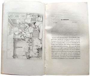 l’auteur par Alexandre Duval. Paris, Isidore Pesron, 1835. 3 parties en un volume in-8, reliure demi-basane brune, dos lisse orné. Frottements sur les coiffes et mors, petites fentes en tête des mors. (4)-192-160-112 pp. et 108 (sur 120) planches hors texte. Manque des livraisons et pages de titre des t. 2 et 3. Qq. rousseurs.Seconde édition dont seule la première page de titre a été conservée, préalablement publiée en 1808 sous le titre Galerie des Mœurs, Usages et Coutumes des Bretons de l’Armorique… D’après Sacher, Bibliographie de la Bretagne, p. 131 : c’est à juste titre que l’on recherche aujourd’hui la Galerie Bretonne, devenue rare. C’est un travail accompli et justement apprécié.