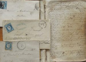prix. Intéressant document permettant d’analyser sur plusieurs années la quantité de bœufs vendus et l’étendue géographique des ventes : Baignes, Montendre, Montguyon, Ozillac, Bédenac, Archiac, Chalais, Barbezieux… On joint 8 documents (lettres, quittance, billets à ordre).