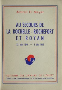 591.MEYER (Amiral H.). Au Secours de La Rochelle - Rochefort et Royan. (22 Août 1944 - 9 Mai 1945). Poitiers, Editions des Cahiers de l’Ouest, 1955. In-8, broché. 87-(3) pp. Carte à pleine page et illustrations dans le texte.Édition originale...