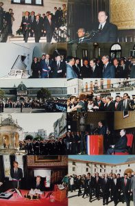 d’Angély pour l’inauguration de la bibliothèque et à Saintes (2) pour célébrer la restauration de l’Abbaye aux Dames. Parmi les personnalités locales figurent Roland Beix, Ivan de Limur, Michel Baron, Philippe Marchand, Xavier de Roux…