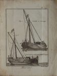papier peigné. Épidermures, mors, plats très frottés, coins très usés. Frontispice par J. B. Scotin, (2)-xiv-(2)-281-(12) pp. Illustré de 3 bandeaux gravés en tête de chaque partie. Exemplaire à toutes marges, tel que paru.On joint 13 planches, la plupart dépliantes, du chapitre Marine de l’Encyclopédie (in-quarto) dont les planches 9 et 9 bis illustrant les formes de radoub de Rochefort.