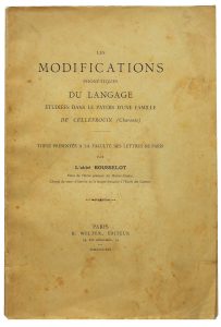 596.ROUSSELOT (Abbé Jean-Pierre). Les Modifications Phonétiques du Langage étudiées dans le patois d’une famille de Cellefrouin (Charente). Paris, H. Welter, 1891. Grand in-8, broché. Couverture un peu défraîchie. (8)-372-(2) pp. Qq....
