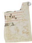 écriture gothique liturgique. Au verso, trace d’une initiale ornée ; musique notée carrée sur portée tracée à l’encre rouge « […]anca ».. . État : au recto, écaillure à l’or bruni ; au verso, restes de colle et de papier suite à un encollage ancien.