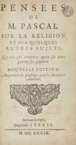 PASCAL (Blaise).. Pensées de M. Pascal sur la religion et sur quelques autres sujets, Qui ont esté trouvées après sa mort parmy ses papiers. Nouvelle édition Augmentée de plusieurs pensées du mesme Autheur.. Suivant la Copie Imprimée à...