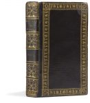 Paris, 1679. — In-12, 132 x 72 : (24 ff.), 382 pp., (1 f.). Maroquin bleu nuit à long grain, roulette et filets dorés en encadrement sur les plats, dos à nerfs orné, roulette dorée intérieure, tranches dorées (Simier).. . Willems, 2112.. . Édition imprimée à Bruxelles par E. Fricx, contenant les Pensées de Pascal suivies des Discours de l’historien Nicolas Filleau de La Chaise (1631-1688) parus pour la première fois en 1672. Bien qu’à pagination suivie, ces discours sont introduits par un titre particulier : Discours sur les Pensées de M. Pascal, Où l’on essaye de faire voir quel estoit son dessein. Avec un autre discours sur les preuves des livres de Moyse.. Bel exemplaire en reliure de Simier, provenant de la bibliothèque de l’homme politique et philosophe Victor Cousin (1792-1862) qui l’offrit, d’après une note portée au crayon en regard du titre, à une personne (l’auteur de la note) le jour de la réception de l’astronome, chimiste, mathématicien et physicien Jean-Baptiste Biot à l’Académie française, soit le 5 février 1857.. Petites fentes sans gravité aux charnières, habiles restaurations. Minime déchirure sans manque au bas des premiers feuillets.. Provenance : capucins du Marais, avec ex-libris manuscrit sur le titre, en grande partie effacé. - Victor Cousin.