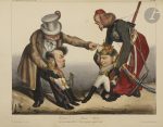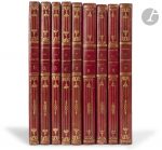 COMPLÈTE DES 251 NUMÉROS DU PLUS IMPORTANT DES JOURNAUX SATIRIQUES DU XIXe SIÈCLE.. . Publiée sous la direction de Charles Philippon, cette revue parut à partir du 4 novembre 1830 jusqu’au 27 août 1835. Chaque numéro est composé de 2 feuillets, sauf les numéros 30, 55 et 56 qui en comptent 3, et illustré d’une à 3 lithographies originales en noir ou en couleurs. Le texte a été en majorité imprimé sur un papier teinté sur un total de 2008 colonnes. Les 99 premiers numéros paraissent sousle titre : La Caricature, morale, religieuse, littéraire et scénique puid sous celui de La Caricature, politique, morale, littéraire et scénique à partir du numéro 100.. . L’illustration comprend 460 lithographies originales en noir et en couleurs, numérotées de 1 à 524, la majorité des planches doubles comptant pour 2 numéros. Carteret indique 530 planches ; il suit le décompte fait par l’éditeur en prenant soin de corriger les erreurs de numérotation. . Philippon s’est entouré des meilleurs artistes de l’époque, qui offrent avec ces centaines de compositions l’une des plus extraordinaires collections de lithographies romantiques. Parmi ces artistes, figurent Grandville, auteur de plus d’une centaine de lithographies, Honoré Daumier, qui a fourni également plus de 100 planches, Henri Monnier, Eugène Lami, Hippolyte Bellangé, Achille Deveria, Raffet, Paul Gavarni, Pigal, A. Menut, Victor Adam, Traviès, etc.. Il manque la planche 19, « comme dans la plupart des exemplaires » d’après Vicaire, elle n’est d’ailleurs pas annoncée dans la table, ainsi que la 153bis. La planche 56bis est bien présente. Cette dernière représentant les Croquades faites à l’audience du 14 novembre 1831 avec des caricatures de Louis Philippe.. . Exemplaire comprenant les 7 premiers numéros en première réimpression selon Carteret, avec le triboulet sans légende. L’avis des n°1 à 49 est à l’adresse du boulevard Poissonnière. Les numéros 30 et 55 sont bien complets de leur complément. Le numéro 48 contient la protestation de Charles Philippon qui remplace le compte rendu ironique d’un procès fait à . M. Eugène Desmares que l’on trouve dans le premier tirage.. Parmi les illustrations supplémentaires on trouve les 8 premières lithographies mensuelles, sur les 24 requises, et l’affiche rose dépliante au numéro 124. On trouve également le très rare supplément annoncé au numéro 56 et relié ici à la fin du 65, appelé Croquades des poires ou Croquades faites à l’audience du 14 novembre 1831, proposant au recto la lithographie des dessins de Philippon et au verso des annonces d’ouvrages. Ce dessin avait été saisi par la police, d’où sa rareté, un nouveau tirage en a été fait, sans texte au verso, pour le n°65 ; ce nouveau tirage est bien présent dans cet exemplaire, placé à la fin du n°233.. À la fin des numéros 215 et 216, se trouve un même prospectus publié par la maison Aubert, comprenant une caricature à pleine page gravée sur bois au recto et une liste des publications de l’éditeur au verso pour les étrennes de 1835.. L’exemplaire comprend également les titres et les tables des tome 1, 2, 4, 5, 6, 7, 8 et 9. Il manque ceux du tome 3 ; il n’en existe pas pour le tome X. Le titre et les tables du 9e volume sont reliés dans le numéro 238.. . Bel exemplaire en reliures de l’époque portant l’étiquette de Susse, « marchand papetier, écrans et jeux nouveaux place de la Bourse à Paris ». Les volumes 6, 7 et 8 proviennent d’un autre exemplaire et présentent au dos un décor légèrement différent par rapport aux autres volumes. Ils sont par ailleurs légèrement plus courts de marges.. . . Quelques frottements d’usage aux coiffes. Feuillets des numéros 162 à 225 fortement brunis. Quelques rares planches déreliées. Certaines planches ont été coupées un peu court par le relieur, atteignant légèrement l’illustration ou la légende. Déchirures sans manque à plusieurs planches dépliantes, celles de la planche double du numéro 139 sont importantes. La planche double 322-323 est déchirée en deux. Déchirure sans manque au premier feuillet du n°172.