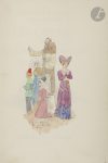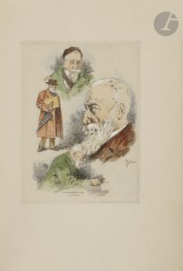 dos à nerfs orné de motifs dorés et mosaïqués de maroquin vert et havane, tête dorée, non rogné, couverture et dos conservés (René Aussourd).. . Édition en partie originale, imprimée par Draeger frères, illustrée de 44 compositions en couleurs de Léon Lebègue, dont . 9 à pleine page.. Un des 100 exemplaires numérotés sur papier vélin d’Arches comprenant une suite des illustrations en noir.. Précieux exemplaire de l’éditeur Ferroud, enrichi d’une aquarelle originale en couleurs de Lebègue, dédicacé à Ferroud, d’un portrait de l’auteur gravé par Louis Monziès, en 2 états (eau-forte pure et avant la lettre), et d’une eau-forte de Serge de Salomko, figurant 4 portraits d’Anatole France, éditée par Ferroud, en 3 états (sur japon, sur vélin avant la lettre avec remarque, sur vélin rehaussé à l’aquarelle).. Très bel exemplaire relié par René Aussourd.