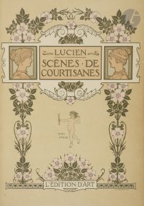 LUCIEN.. Scènes de courtisanes. Traduction de H. Piazza et C. Chabault.. Paris : Éditions d’Art H. Piazza, [1901]. — In-8, 225 x 157 : (2 ff. premier blanc), 173 pp., (3 ff. dernier blanc), couverture illustrée. Maroquin brun, bande de...