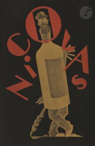 - 1929. Couverture noire illustrée du personnage Nectar en or entouré du nom « Nicolas » en lettres rouges. Exemplaire complet du feuillet doré volant, indiquant : « Pour la première fois les établissements Nicolas publient la nomenclature des prestigieuses bouteilles de leur «grande réserve» particulière…» - 1930. Reliure à spirale. Premier catalogue Nicolas à spirale fer. Belle couverture ornée du personnage de Nectar en noir sur fond or typiquement art déco et deux représentations du même personnage dorées sur fond noir, contrecollées à l’intérieur. Joint un feuillet illustré sur les appellations d’origine des grands vins de Bourgogne. - 1931. Illustrations de CASSANDRE. Complet des 4 pages volantes sur la défense des appellations d’origine des grands vins de Bourgogne. - 1932. Illustrations d’Edy LEGRAND. - 1933. . Illustrations de Jean HUGO. - 1934. Bois en couleurs d’Alfred LATOUR. - 1935. Dessins de DARCY. - 1936. Compositions et typographie de CASSANDRE. Joint un feuillet volant : « Modèle de l’affiche accompagnant sur les murs de la Capitale notre «Liste des Grands Vins» ». Rousseurs éparses. - Autre exemplaire du même catalogue, parfaitement conservé. - 1938. Illustrations de GALANIS. - 1939. Illustrations de C. ERICKSON.. . CHEMISE 2 :. - 1949. Sous le Signe de Paris. Illustrations de DIGNIMONT. - Autre exemplaire du même catalogue. - 1950. Sous le signe du Soleil Levant. Illustrations de R. HARADA. - Autre exemplaire du même catalogue. - 1951. Sous le signe d’une vierge folle de la cathédrale de Strasbourg. Illustrations de Berthommé SAINT-ANDRÉ. Ornements d’Alfred LATOUR. - 1953. Sous le signe de Don Quichotte. Illustrations de Léon Gischia. Ornements d’Alfred LATOUR. - 1954. Sous le signe de quelques jolies filles des provinces de France. Aquarelles de VAN DONGEN. - 1955. Sous le signe des “Still life” (vies silencieuses). Peintures d’André MARCHAND.. . CHEMISE 3 :. - 1956. Sous le signe de l’Île-de-France. Peintures de Roland OUDOT. - 1957. Sous le signe d’une petite fille. Aquarelles de Constantin (Kostia) TERECHKOVITCH. - 1958. Sous le Signe du Soleil (Provence). Peintures de Roger LIMOUSE. - 1959. Sous le signe du Mexique. Peintures de Christian CAILLARD. - 1960. Sous le signe des Antilles françaises. Peintures de Robert HUMBLOT. - 1961. Sous le signe des fruits de la terre de France. Peintures de Georges ROHNER. - 1962. Sous le signe de l’été de Saint-Martin. Peintures de MINAUX.. . CHEMISE 4 :. - Liste des grands vins 1963. Aquarelles de Bernard BUFFET. - Liste des grands vins 1964. Peintures de Claude SCHURR. - Liste des grands vins 1965. Aquarelles de Roger CHAPELAIN-MIDY. - Liste des grands vins 1966. Peintures de GUIRAMAND. - Liste des grands vins 1967. Peintures de SAVIN. - Liste des grands vins 1969. Peintures de LORJOU. - Liste des grands vins 1970. Peintures de GHIGLION-GREEN. - Liste des grands vins 1971. Peintures de Maurice Élie SARTHOU. - Liste des grands vins 1973. Peintures de GUERRIER.. . On joint, à part :. - Autre exemplaire du catalogue 1965 illustré par Chapelain-Midy.. - Le Génie du Vin. 1972. Plaquette in-4 publiée “à la gloire des vins de France” pour le cent cinquantenaire de la fondation des Établissements Nicolas, illustrée de 13 compositions en couleurs d’André DERAIN. Présentation par Thierry Maulnier.. - Nicolas. Carte fines bouteilles. 1995. Peintures de Fiora TREMBOWICZ.. . L’ensemble est dans un très état de conservation. La protection en papier cristal a été parfois collée à l’aide d’un bout de scotch à la couverture.