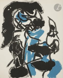 celle hollandaise faite par André Franquinet de ce choix de poèmes d’André Frénaud. Elle est illustrée de . 6 lithographies originales hors texte de Karel APPEL (1921-2006) dont 5 en couleurs et une en noir.. Tirage à 75 exemplaires numérotés sur papier vélin, signés par l’auteur et l’artiste (n°30). Les lithographies ne sont pas signées.Exemplaire parfaitement conservé.
