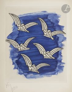 Édition originale de ce poème en reproduction du manuscrit de l’auteur, tirée à 146 exemplaires sur vélin d’Arches. Il s’agit du cinquième volume de la collection « Écrits et gravures » publiée par Louis Broder.. Un des 120 exemplaires illustrés en frontispice d’une eau-forte originale en couleurs de Georges BRAQUE (n°76), tous signés par l’auteur et l’artiste à la justification. L’eau-forte n’est pas signée.. Exemplaire parfaitement conservé, enrichi du feuillet de parution. On note simplement une décharge de la gravure au verso du faux titre et sur le titre.
