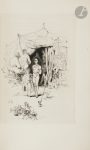 dos à nerfs, doublures de maroquin bleu bordé d’un filet doré, gardes de soie brochée à motifs de fleurs bleues sur fond noir, doubles gardes, tranches dorées sur témoins, couverture et dos conservés, étui (Trinckvel).. . L’un des plus beaux livres illustrés par le dessinateur et graveur Auguste BROUET (1872-1941), orné de 68 eaux-fortes originales de l’artiste, dont une sur la couverture, une sur le titre, une en tête du texte page 1, 50 culs-de-lampe et 15 hors texte. L’artiste y fait preuve d’une parfaite connaissance du monde forain.. Tirage limité à 200 exemplaires ; celui-ci est l’un des 160 sur Hollande Van Gelder Zonen.. Exemplaire du peintre et dessinateur expressionniste Gen Paul, portant cet envoi de l’éditeur sur le faux titre : . à Gen Paul en route // pour la gloire // hommage de l’Editeur // F. Grégoire // Paris le 27 avril 24. Brouet et Gen Paul doivent beaucoup à Frédéric Grégoire, si l’on en croit Lucien Descaves qui écrivit dans le n°235 de Tanagra (28 novembre 1931) : « Qui ne connait à Marseille et ailleurs Frédéric Grégoire ne peut pas savoir quel ami les peintres modernes ont en lui et la fière chandelle qu’ils lui doivent [...] Les artistes dont il [s’est] fait l’introducteur auprès des amateurs et du public s’appellent Auguste Brouet, [...], Marcel Cosson, Gen Paul et Zimmerman. Ce sont pour la plupart ses enfants adoptifs. Il en est fier et ne présente leurs œuvres que parce qu’il les admire, qu’il a été témoin de leur croissance et l’un des premiers, sinon le premier à se réjouir et à se féliciter de leurs progrès. [...] Je porte témoignage des soins dont il a entouré Brouet, Cosson, Gen Paul et Zimmerman. » . Très bel exemplaire en maroquin doublé de Trinckvel, très bien conservé.. Provenance : Gen Paul, avec envoi de l’éditeur.