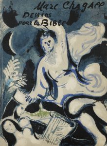 dessins que Marc CHAGALL (1887-1985) avait « exécutés en 1958 et 1959 sur des thèmes bibliques qu’il n’avait en général pas traités dans son illustration pour la Bible, gravée à l’eau-forte et qui fut reproduite dans le numéro de 33/34 de Verve » (justification).. Débutant par une préface signée de Gaston Bachelard, l’édition comprend 96 reproductions en noir et 25 lithographies en couleurs dont une sur le cartonnage, spécialement réalisées pour l’ouvrage.. Exemplaire très bien conservé malgré quelques usures aux coins et sur le bord des plats.