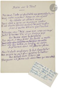 CHIMOT (Édouard) - LOUŸS (Pierre).. Poèmes inédits. 1887-1924. [Avec] : Poèmes inédits. Poésies libres 1887-1924.. [Paris, 1934]. — 2 parties en un volume in-4, 287 x 225 : frontispice, (2 ff. blancs), 66 pp., (5 ff. 3 derniers blancs), 5...