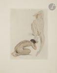 planches, couverture imprimée ; frontispice, (2 ff. blancs), 39 pp., (2 ff. blancs), 3 planches, couverture imprimée. En feuilles, couvertures rempliées, chemise et étui de l’éditeur.. . Édition originale tirée à seulement 109 exemplaires, illustrée de 6 eaux-fortes originales en couleurs hors texte d’Édouard CHIMOT, gravées au repérage.. Un des 75 exemplaires sur vélin de Rives contenant les eaux-fortes en l’état définitif. Il a été enrichi du supplément hors commerce contenant des poèmes libres, tiré à petit nombre pour l’artiste et ses amis, illustré de . 4 eaux-fortes originales en couleurs hors texte de Chimot.. Outre ce supplément, on trouve dans l’exemplaire le manuscrit autographe du début du poème Moïse sur le Pénil, adaptation libre, semble-t-il inédite, du poème du même titre de Victor Hugo, et une carte de visite de Pierre Louÿs avec cette note autographe adressée à Catulle Mendès : « exprime à M. Mendès tous les regrets de ne pouvoir, Léda étant épuisée, lui offrir un exemplaire intact. ». Exemplaire très bien conservé.