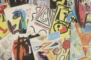 [COBRA].. Artistes libres. Première série du (sic) bibliothèque de Cobra.. Copenhague : Ejnar Munksgaard, 1950. — 2 ff. et 15 fascicules in-12, sous couverture illustrée à recouvrement.. . Ensemble complet des deux feuillets de présentation...