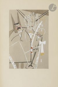 album composé de 21 aquarelles de Yan-Bernard DYL (1887-1944), dont une en noire sur le titre et 20 en couleurs, reproduites par les ateliers Jacomet et rehaussées au pochoir.. Dyl était un peintre, décorateur et illustrateur proche de Robert Delaunay. Il fut l’un des représentants du mouvement Art déco, auteur de plusieurs publicités ainsi que de couvertures et d’illustrations notamment pour l’éditeur Simon Kra, dont cette Petite ville publiée en 1926 qui montre à travers 20 illustrations la vie d’un village de province.. Cet album est considéré comme l’un des chefs-d’œuvres de cet artiste injustement oublié et l’un des premiers livres inspirés par le cinéma. Chaque composition est protégée par une serpente sur laquelle est imprimée une légende, ou plus exactement un morceau de texte qui bout-à-bout forme une phrase décrivant le village.. Tirage à 175 exemplaires. Un des 10 premiers sur japon, celui-ci étant plus précisément l’un de 9 sur ce papier numérotés de 2 à 10 (n°10), le numéro 1 étant celui qui contient tous les dessins originaux.. Exemplaire parfaitement conservé malgré de légères déchirures au bord de la couverture. Il est conservé dans un très bel étui signé de Lars Strid.