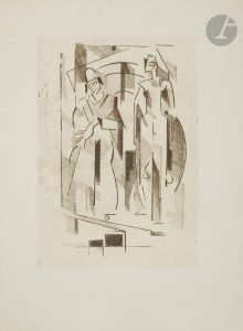 feuilles, couverture rempliée, chemise et étui de l’éditeur.. . Édition tirée à 235 exemplaires, illustrée de 57 eaux-fortes originales du peintre et graveur Albert GLEIZES (1881-1953), l’un des fondateurs du cubisme, dont 12 à pleine page et 45 dans le texte.. Un des 35 exemplaires réservés à l’artiste et aux collaborateurs, celui-ci imprimé sur vergé de Montval à la main, spécialement imprimé pour l’artiste, signé par ce dernier sur le faux titre.. Il a été enrichi des pièces suivantes :. - suite en noir des 15 eaux-fortes préparatoires,. - suite en bistre de toutes les illustrations du livre,. - feuillet de souscription,. - brochure in-8, agrafée, proposant le texte Sur les Pensées de Pascal illustrées par Albert Gleizes de Dom Angelico Surchamp, tiré à part de Témoignages XXIX, . - manuscrit autographe signé d’Albert Gleizes, 2 pages in-4, intitulé Illustrer les Pensées de Pascal, avec ratures, corrections et ajouts de l’auteur. Il s’agit du texte que l’artiste publia dans le journal Art/Beaux-Arts du 24 mars 1950, et qui sera par la suite repris dans plusieurs publications dont le catalogue raisonné d’Albert Gleizes publié en 2006 par Anne Varichon. Il est d’une très grande importance puisque le peintre y livre, entre autres, les motivations qui le poussèrent à tenter l’illustration de cette œuvre et donne des explications destinées à aider le lecteur « à pénétrer le caractère un peu mystérieux » de ses compositions.. Déchirure sans manque à la couverture. Quelques légères rousseurs, touchant essentiellement les couvertures.