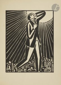 évocation symbolique du soleil, idéal lumineux vers lequel l’homme se tourne, composé de 63 illustrations dessinées et gravées sur bois à pleine page du peintre, graveur et illustrateur belge Frans MASEREEL (1889-1972).. Un des 21 premiers exemplaires sur papier japon (n°7), les seuls signés par l’artiste.. Exemplaire parfaitement conservé.