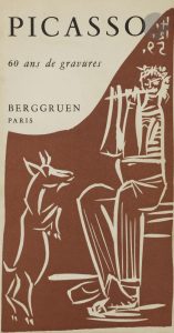 PICASSO (Pablo). . 60 ans de gravures.. Paris : Berggruen & cie, [1964]. — Plaquette in-8, 220 x 115. Broché, couverture illustrée.. . Quarante-et-unième plaquette de la collection Berggruen, proposant un catalogue de 409 eaux-fortes, pointes...
